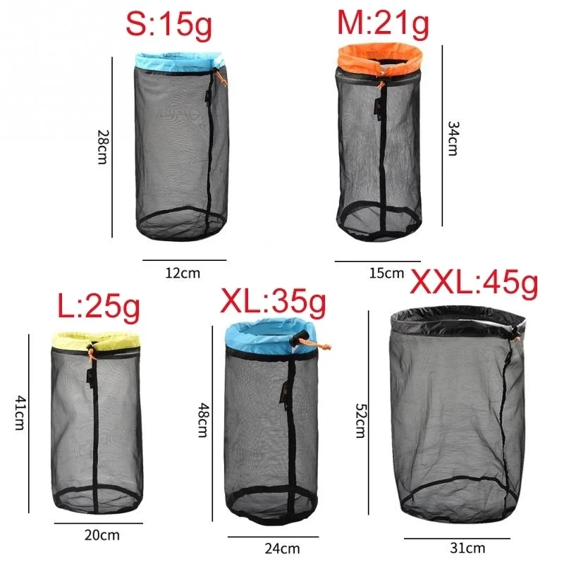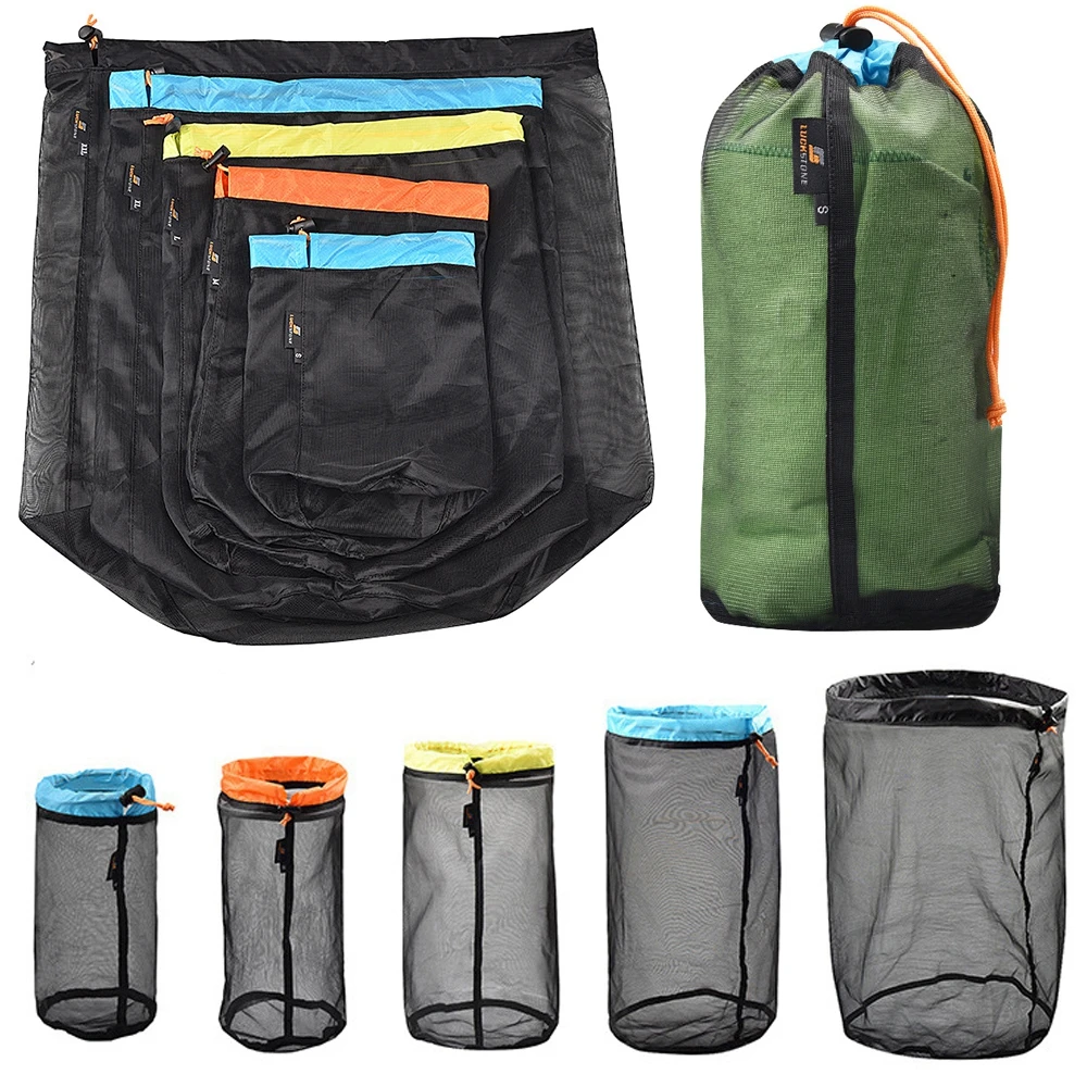 S~XXL Ultralight Mesh Storage Bag Drawstring Bags High quality Outdoor Stuff Sack Traveling Organizer Hiking Tool
